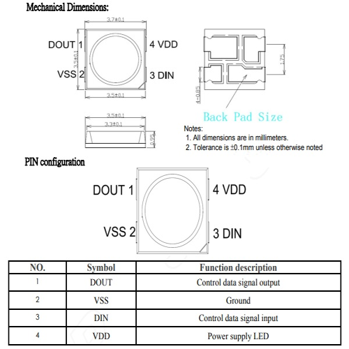 - Dimensiones: 3.5x3.7x0.95mm