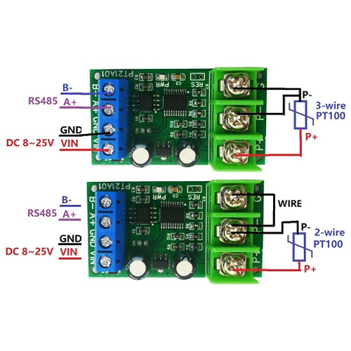 Módulo de adquisición para sensor de temperatura PT100. De un solo canal y con comunicación RS485.