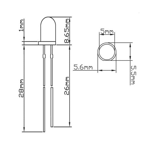 - Polaridad: Ánodo (pin más largo) | Cátodo (pin más corto)