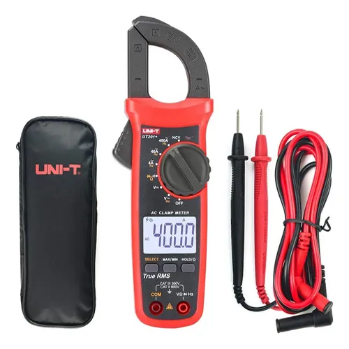 Volts AC/DC: 200mV - 600V. Corriente AC: 2A - 400A Resistencia: 200Ω - 40MΩ true RMS, 28mm Mordaza