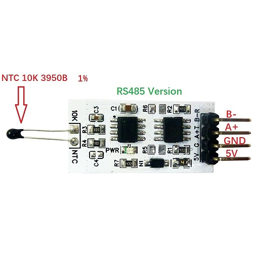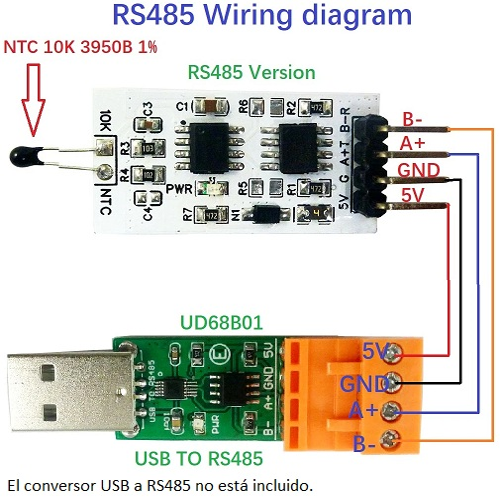 M贸dulo sensor de temperatura NTC 3950 con resistencia de 10k y protocolo de comunicaci贸n RS485. En el termistor la resistencia disminuye a medida que aumenta la temperatura y aumenta cuando la temperatura empieza a descender. Es de alta sensibilidad y respuesta. Dise帽ado para aplicaciones de medici贸n y control donde se requiera una adqusici贸n de datos remota.