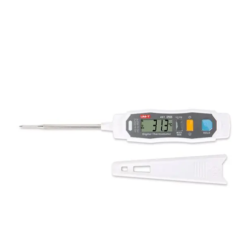 Termómetro infrarojo digital, epecial como ayudante de cocinauso adicional en refrigeracion y calefacción medidas entre -40 ° C hasta 250 ° Cusa pila tipo CR 1632, profundidad minima para la medida 12 mm