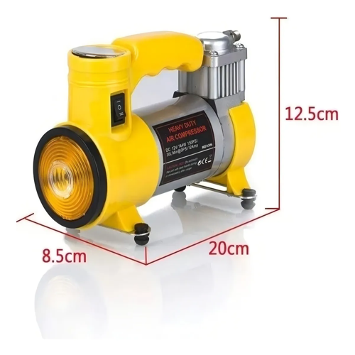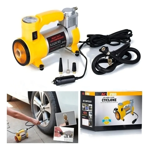 El compresor inflador de aire llanta carro vehÃculo de color Amarillo es la herramienta perfecta para mantener tus neumáticos siempre en óptimas condiciones. Con un caudal de aire de 35 l/min y una presión máxima de 150 psi, podrás inflar tus llantas de forma rápida y eficiente. Su marca AC-PRO garantiza calidad y durabilidad en cada uso. Además, su diseño mini y portátil te permite llevarlo a cualquier lugar sin complicaciones. Incluso cuenta con una linterna incorporada para brindarte mayor visibilidad en situaciones de poca luz. No pierdas la oportunidad de adquirir este modelo y asegúrate de tener siempre un compresor confiable a tu disposición.