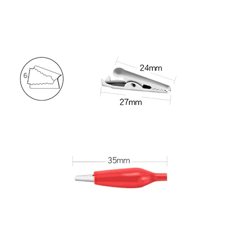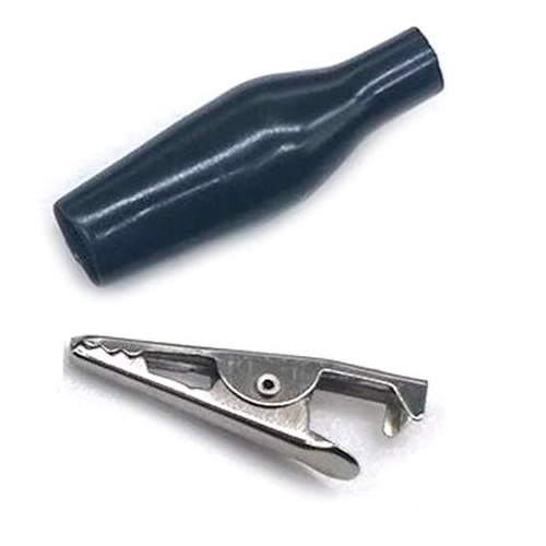 Pinza caimán fabricada en metal con recubrimiento vinÃlico.