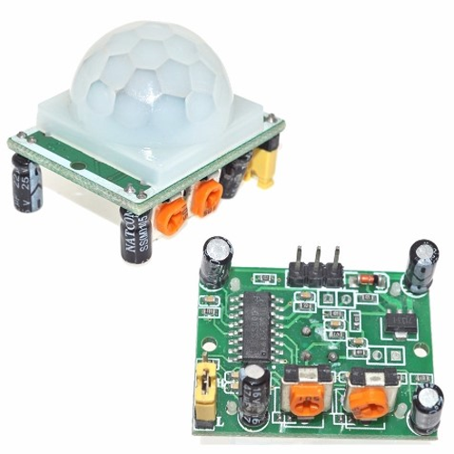 Sensor ajustable que detecta movimiento al medir cambio en el infrarrojo emitido por los objetos circundantes.