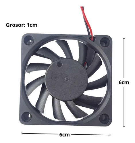 12 Volts DC Ventilador o extractor de Aire Axial con sistema de BUJE - Medidas: 60 X 60 X 10mmConsumo de 0,16 Amp - Potencia de 1.92 Watts 4.200 RPM, flujo de aire 18.67 CFM Con 11 Aspas.